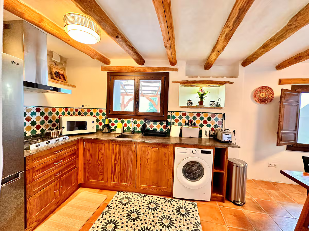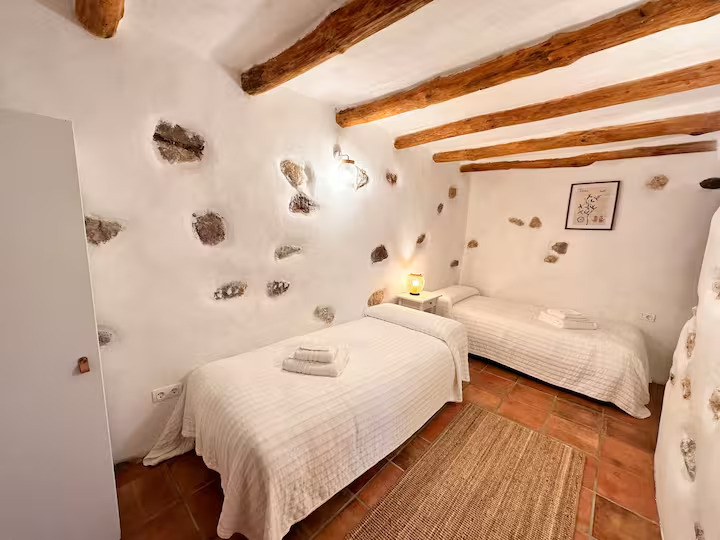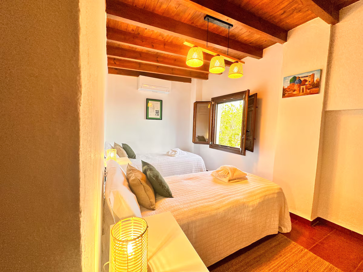 If you prefer a bit more privacy, then this one might be just for you. A lovely house with a kitchen and some living space on the first floor and 2 bedrooms plus a bathroom on the ground floor. It also has the biggest terrace with astonishing views.